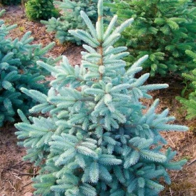 Красивый сорт голубой ели с ширококонической очень густой кроной. Хвоя жёсткая, колючая, привлекательного серебристо-голубого цвета. Сорт отличается достаточно сдержанным ростом - к 10 годам достигает 1,5 - 2 м высоты, а к 30 годам может быть до 10 м.